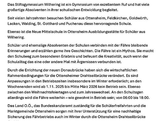 Die Donaufähre bleibt für Schüler des Stiftsgymnasiums Wilhering auch in Zukunft erhalten! 👍